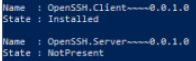 | > Get-WindowsCapability -Online | Where-Object Name -like 'OpenSSH*' |