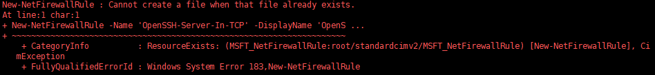 New-NetFirewallRule : Cannot create a file when that file already exists.